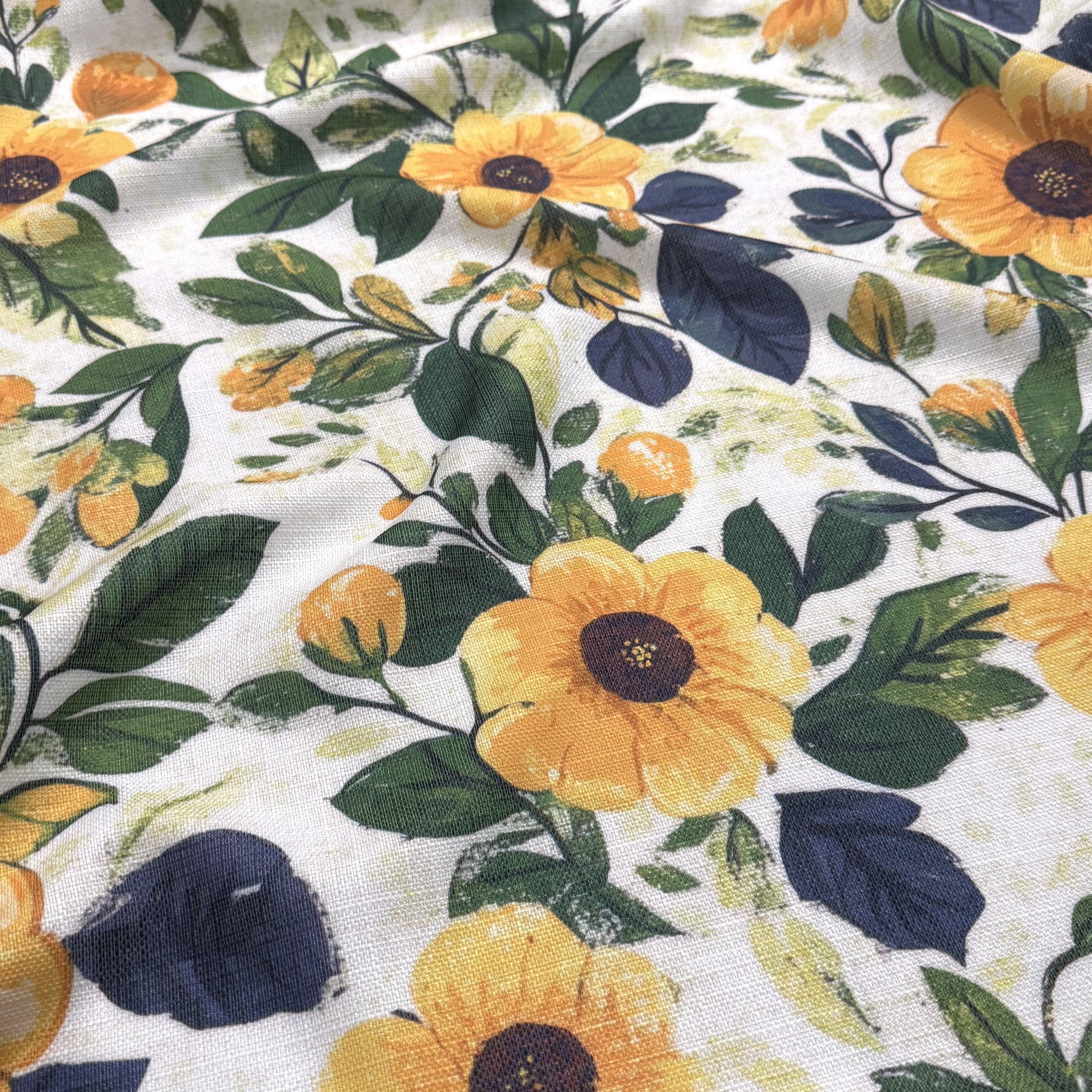 Fabric Collection: Add rustic charm to any event with this vibrant Sunshine Blooms fabric. It offers a charming rustic sunflower floral print on a textured slub polyester base. Perfect for tablecloths, napkins, runners, and drapes, it’s a favorite for rentals, weddings, and special occasions. Durable, elegant, and easy to style indoors or out.
