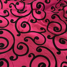 Swirl Flocking Taffeta Table Linen in Black on Fuchsia