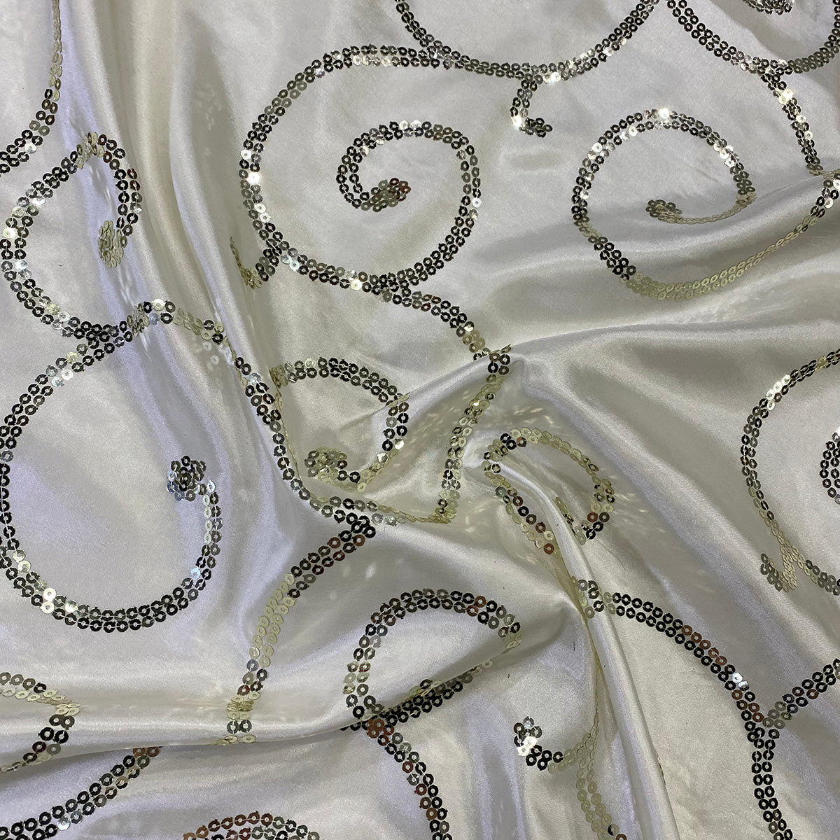Fabric Collection: This fabric has a solid taffeta base w/ a sequins swirl design throughout.
