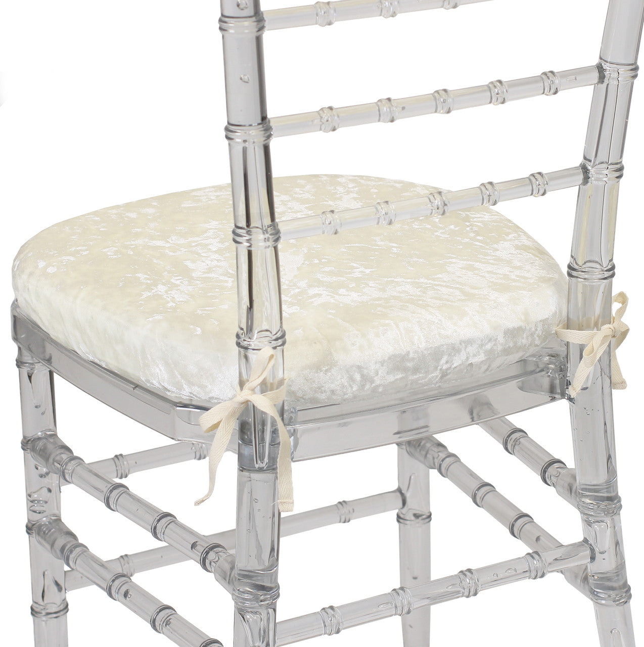 Velvet Spandex Chiavari Pad Cover w/ Ties in Ivory