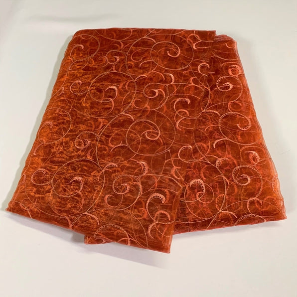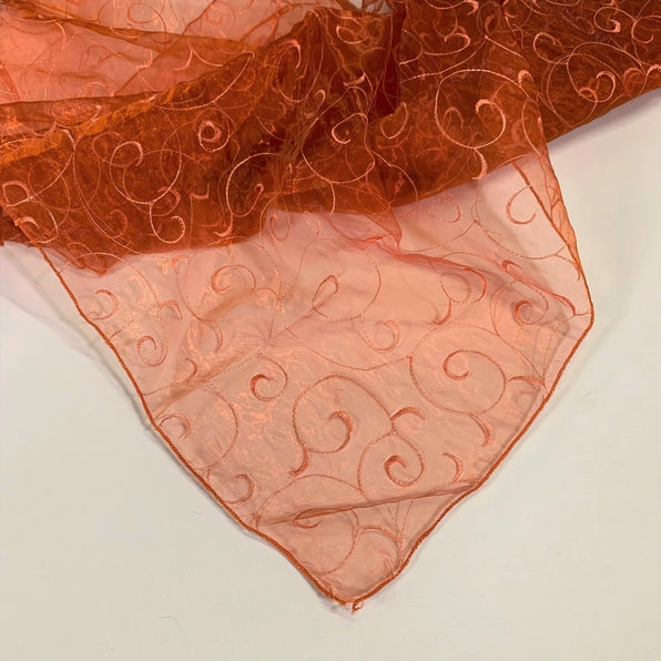 12pcs - Swirl Embroidery Sheer - 85"x85" Square - Orange