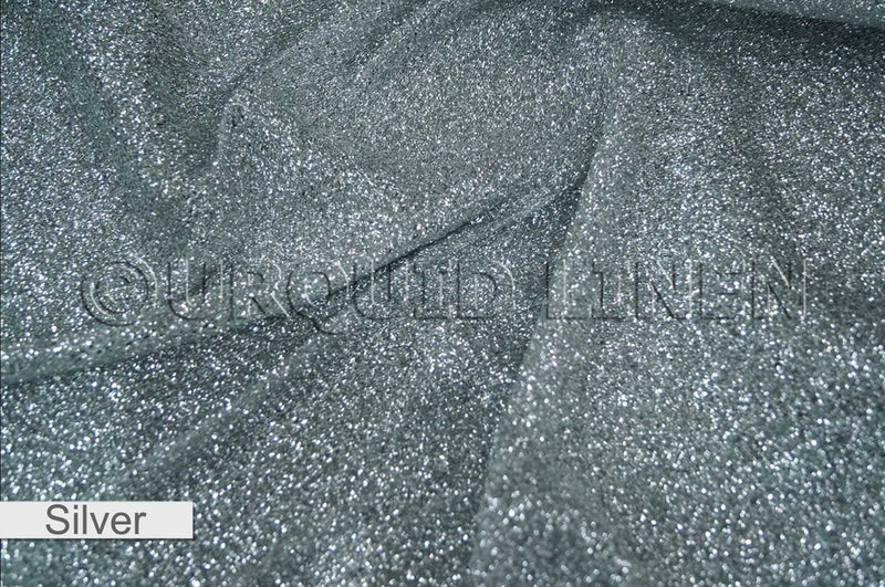 This material has fuzzy metallic shreds embroidered all throughout the fabric.