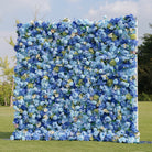Our Blue flower wall offers a beautiful combination of Hydrangea, Rose, Daisy and Galsang flowers in bluish hues along with small accents of ivory and greenery. This item is made from high-quality materials and is densely layered to provide a stunning and long lasting Flower Wall.