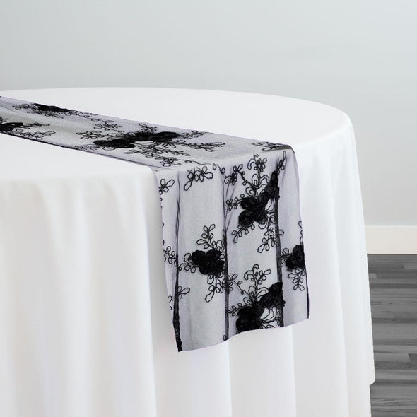 Baby Rose Embroidery Table Runner in Black