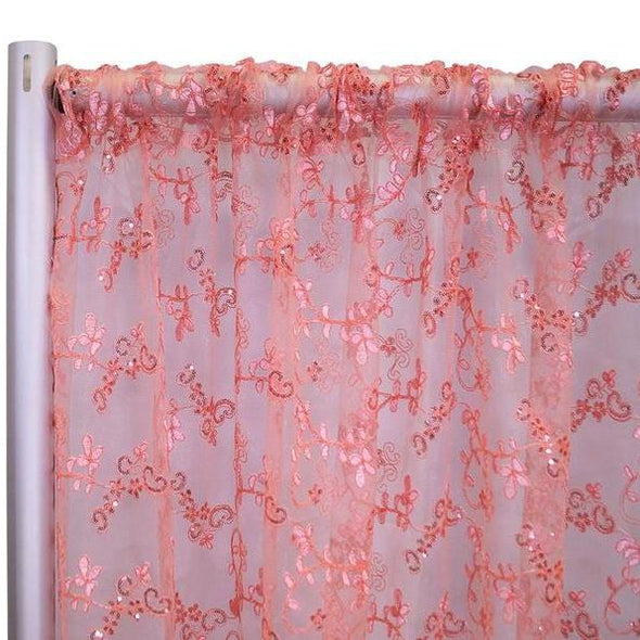 SIZE OPTIONS: Select your desired panel height above. Panels are approx. 52" wide and come standard with a 4" Rod Pocket on top. You can add a bottom Rod Pocket for an additional $5.00 per panel. Our drapes will work on any of our Pipe & Drape systems. Contact us at 800-590-9508 for custom sizing.
