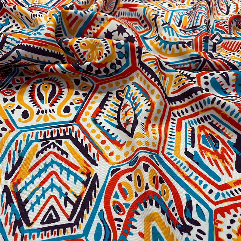This fabric has a 100% polyester base with our "Bongo" prints.