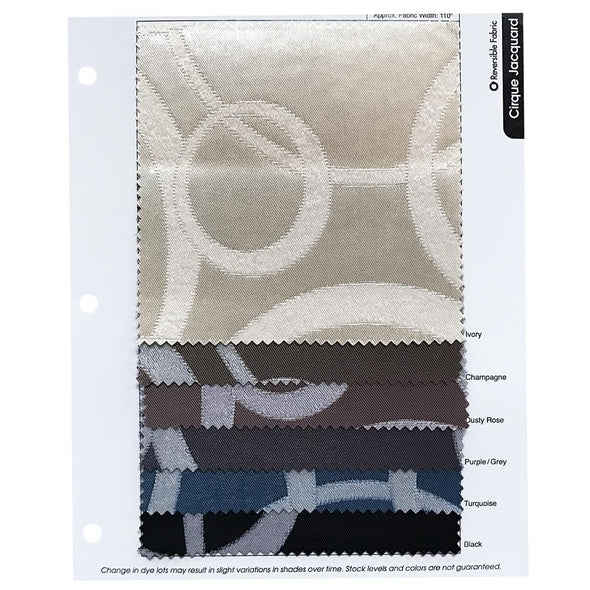 Fabric Collection: This fabric is a reversible material with one side having a soft fiber finish and the other is a smooth finish with a slight shine in our Cirque Jacquard print throughout.