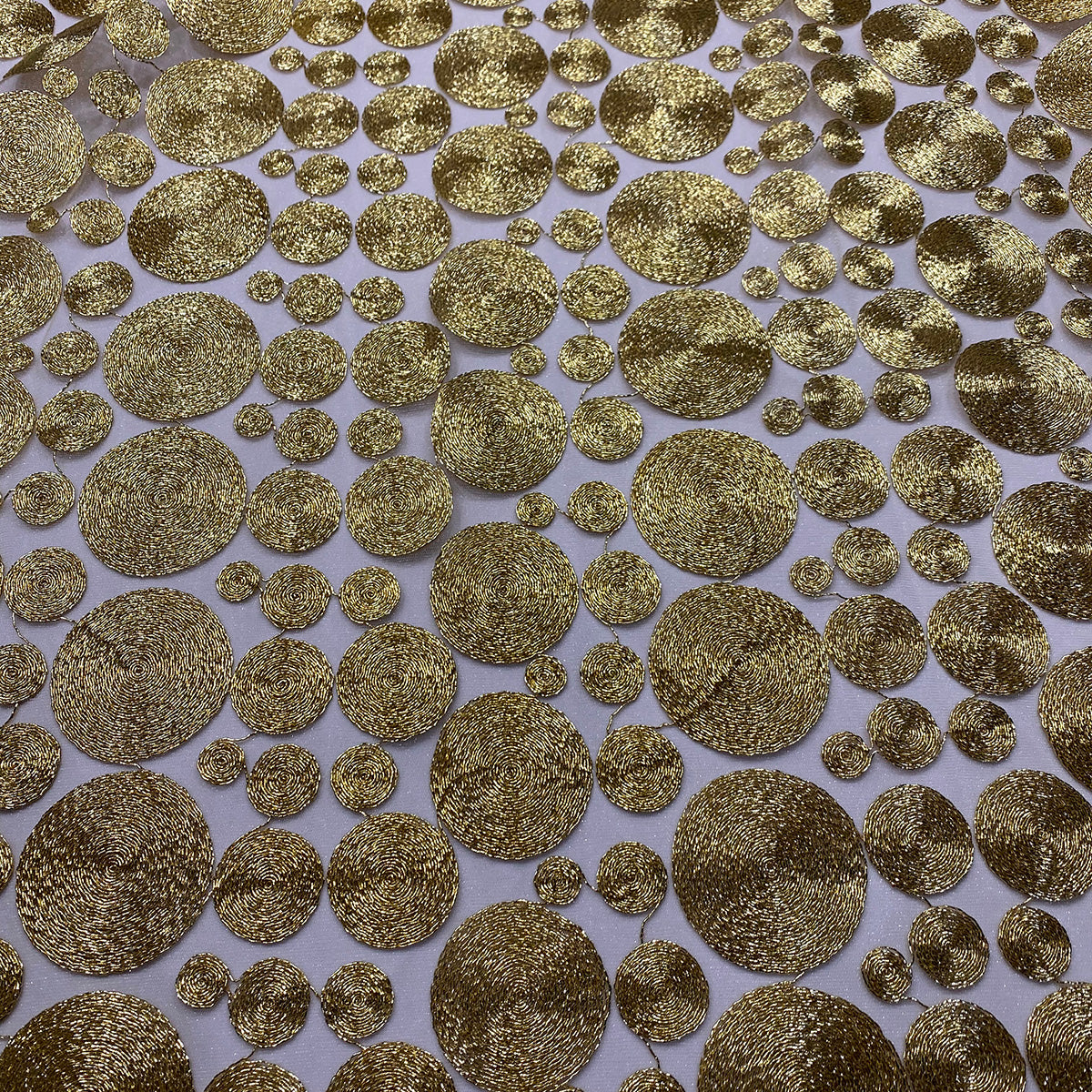 Fabric Collection: This fabric has a mesh netting base w/ our "Coin" metallic circle embroidery design.