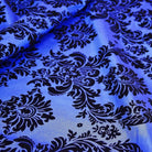 Damask Flocking Taffeta Wholesale Fabric in Black on Royal