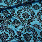 Damask Flocking Taffeta Wholesale Fabric in Black on Turquoise