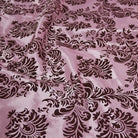 Damask Flocking Taffeta Wholesale Fabric in Brown on Pink