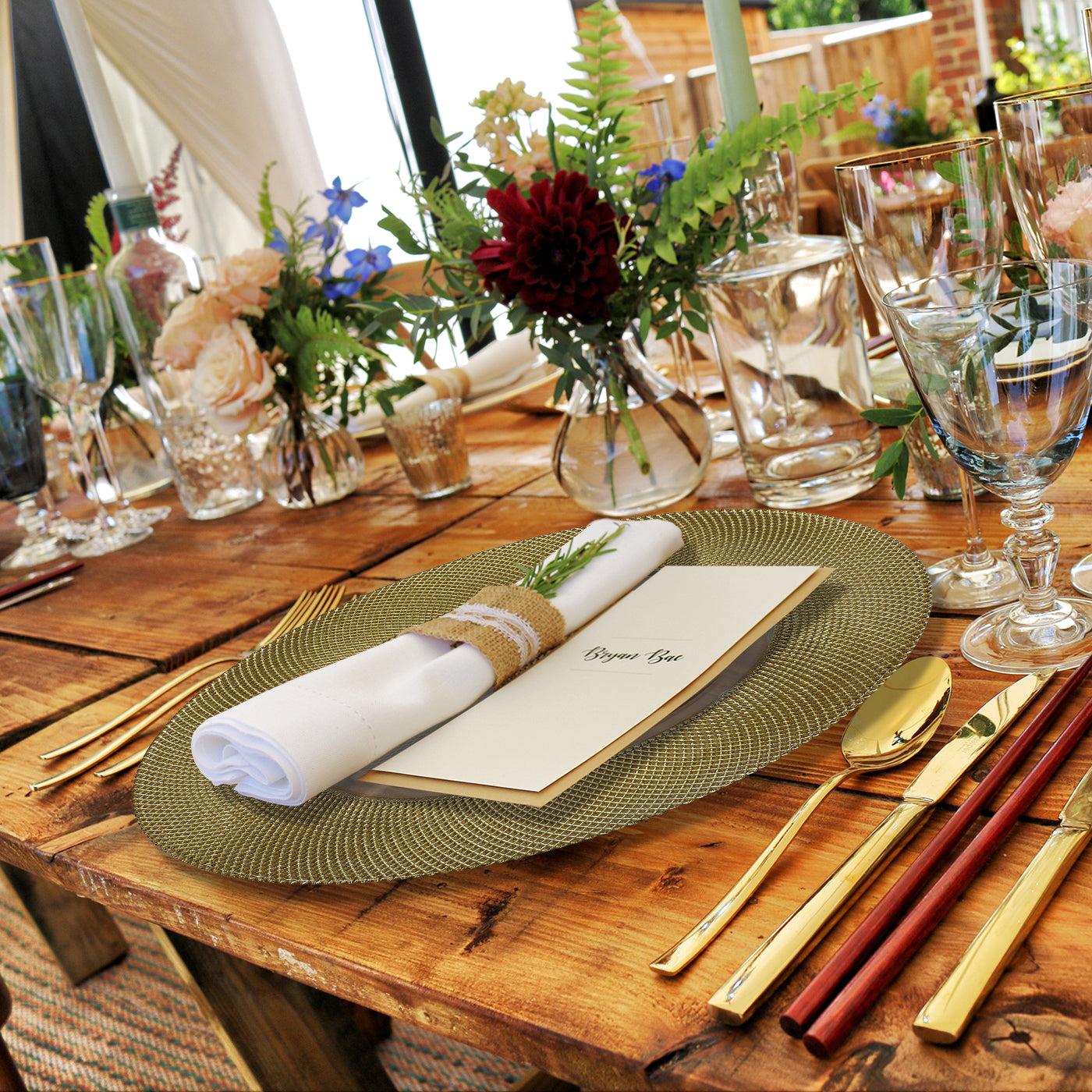 • All table linen (tablecloths, overlays, napkins runners, skirting etc),