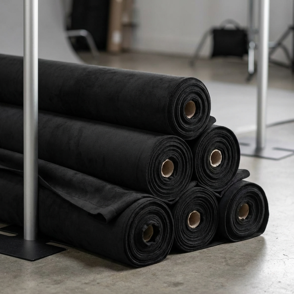 Duvetyne fabric is an ideal of drapery when needed a blackout fabric. It's commonly used for Stages, Conventions, Dressing Rooms, and A/V professionals. It does a great jump of blocking light out and has a felt like, matte finish to it. It's It's also inherently (permanently) flame retardant.