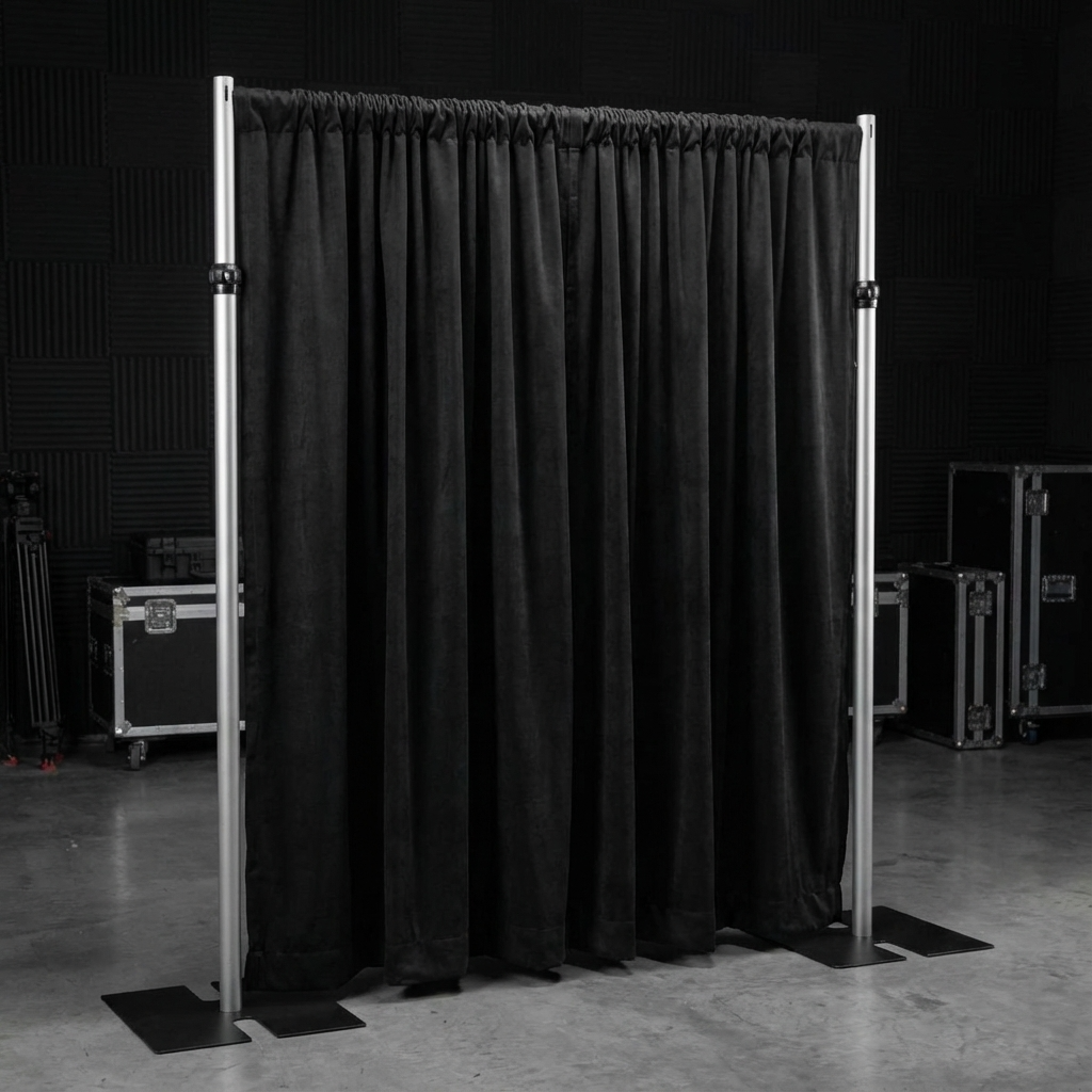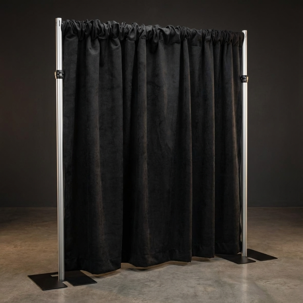 SIZE OPTIONS: Select your desired panel height above. Panels are 48" wide and come standard with a 4" Rod Pocket on top. You can add a bottom Rod Pocket for an additional $5.00 per panel. Our drapes will work on any of our Pipe & Drape systems. Contact us at 800-590-9508 for custom sizing.