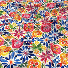 Brighten any celebration with this vibrant floral fabric, ideal for tablecloths, runners, napkins, and drapes. Its colorful design is perfect for weddings, parties, and special events, bringing a cheerful and festive touch to your décor.