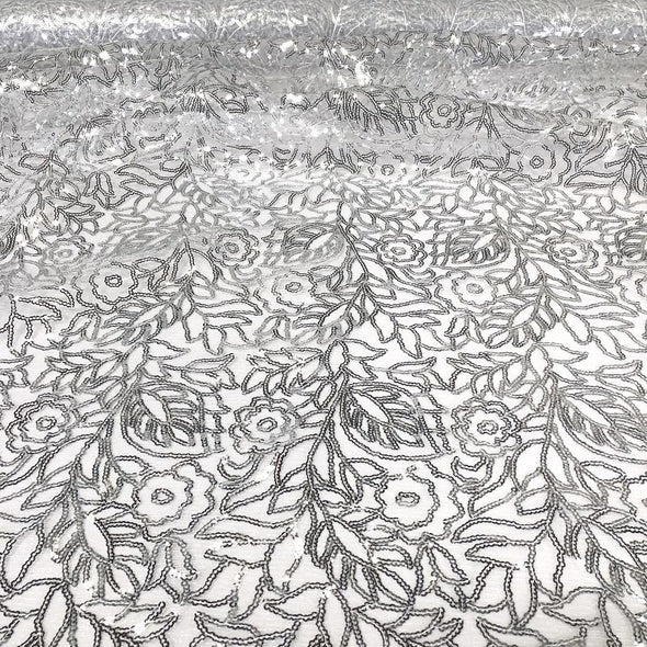 Fabric Collection: This material has a sheer base w/ a sequins embroidery which makes a floral design.