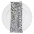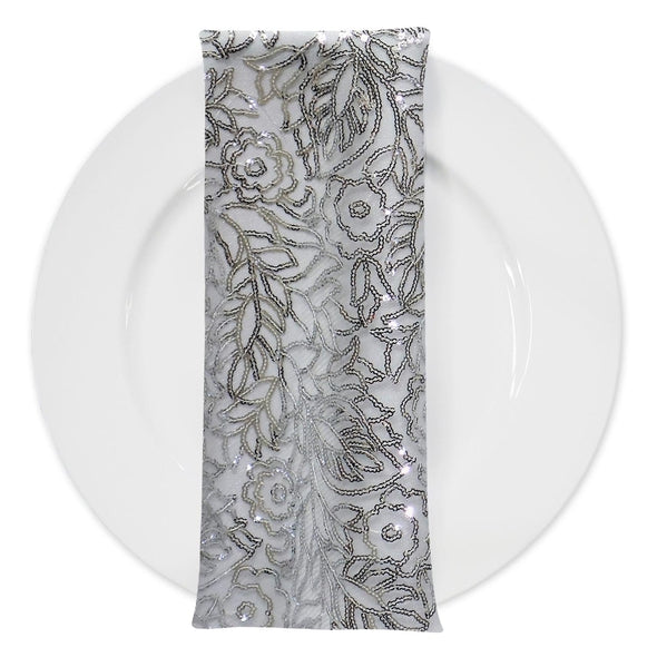Fiori Leaf Sequins (w/ Poly Lining) Table Napkin Silver