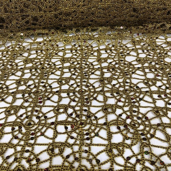 Flower Chain Lace Wholesale Fabric in Brown and Gold