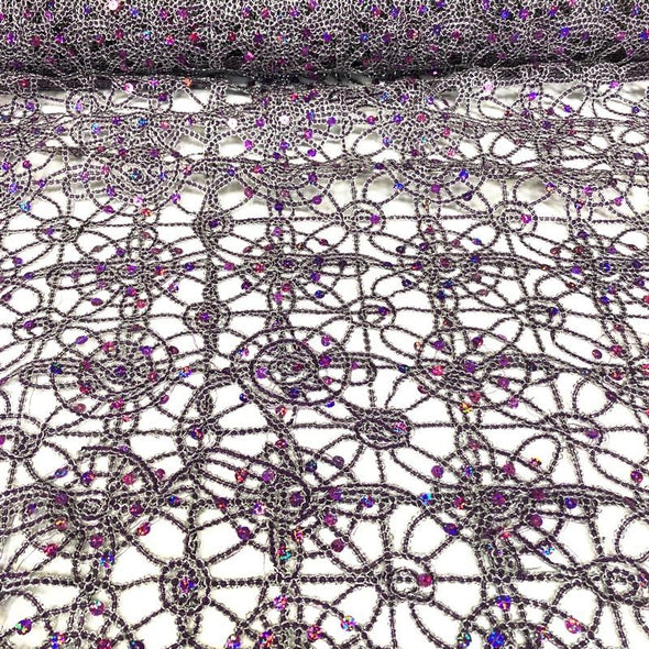 Flower Chain Lace Wholesale Fabric in Purple and Silver