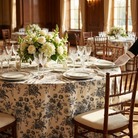 French Toile (Poly Print) Table Linen in Black / Taupe