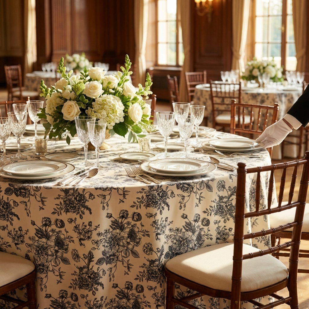 • All table linen (tablecloths, overlays, napkins runners, skirting etc),