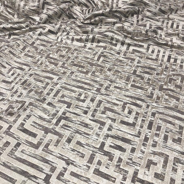 Fabric Collection: This fabric is a Jacquard material with a metallic geometric embroidered design throughout.