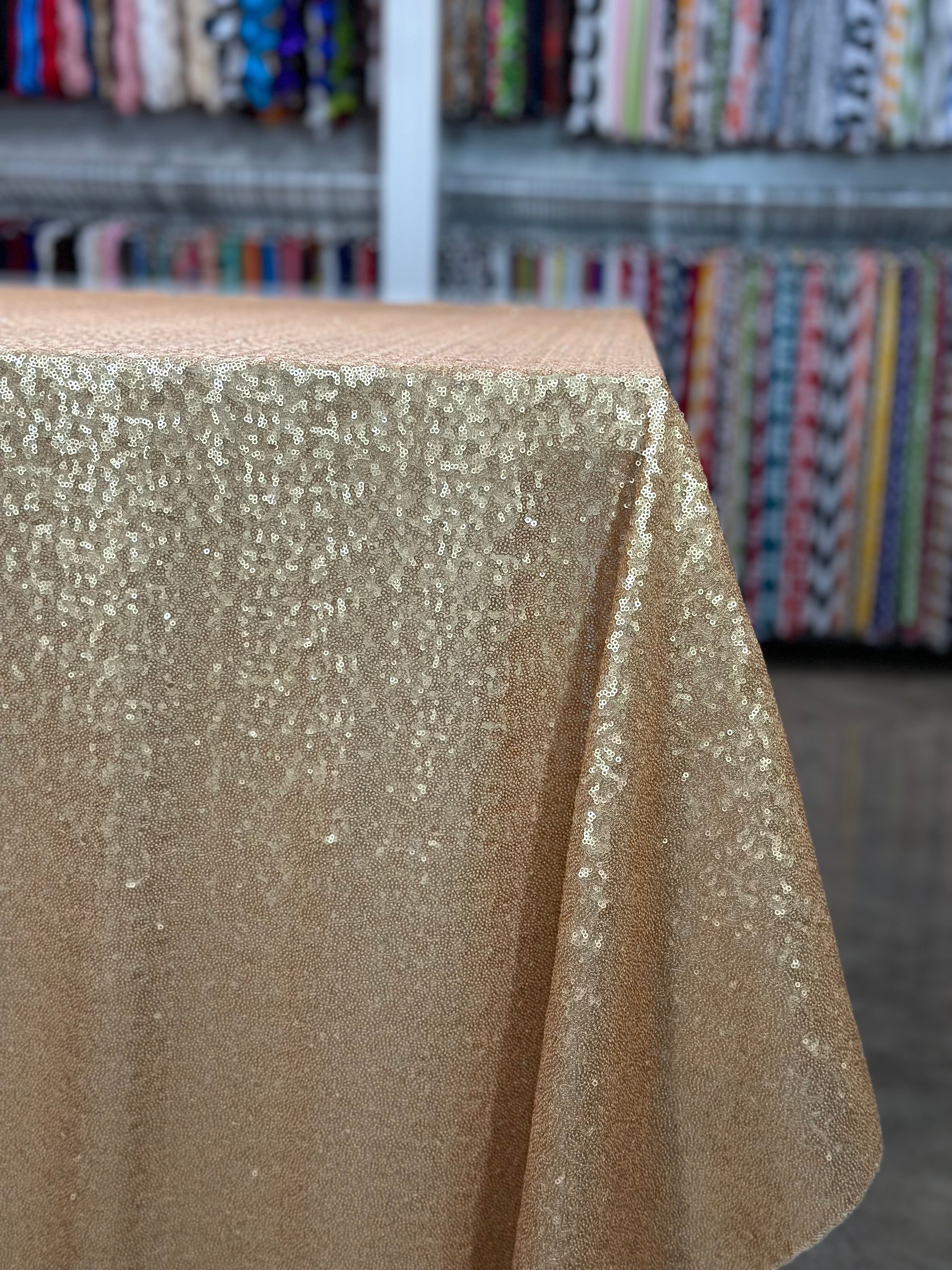 Table linen sizes that exceed the width of the fabric will have seams. All seams are sewn with 5 thread overlock sergers for long lasting durability.