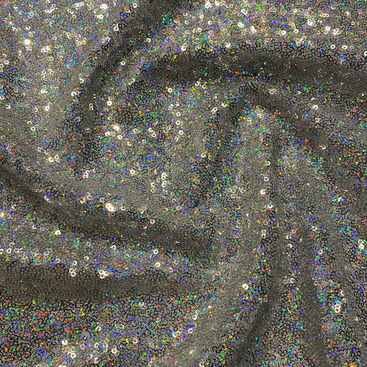 Fabric Collection: This fabric has a mesh base w/ mini sequins clusters embroidered throughout the fabric which gives it a solid look.