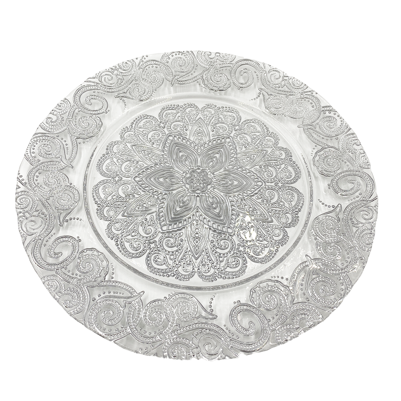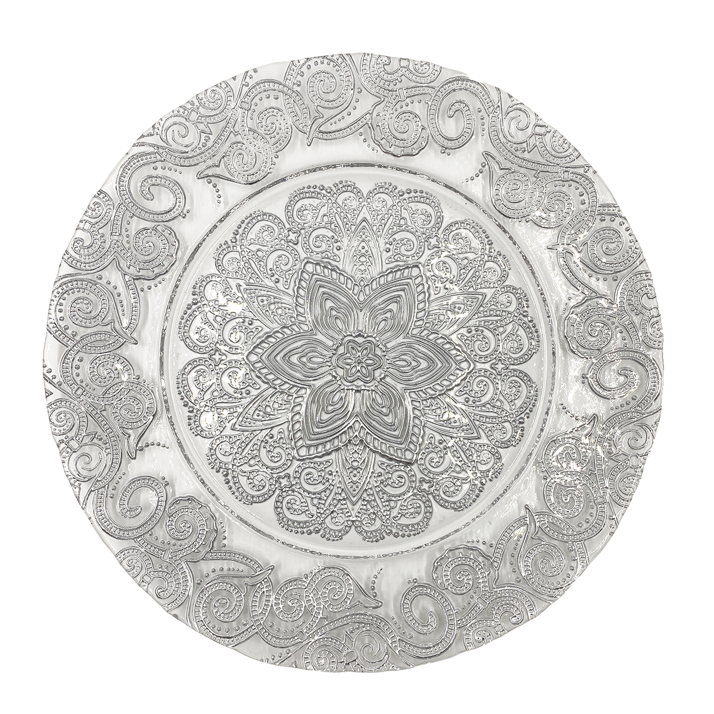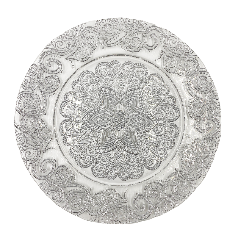 Henna - Glass Charger Plate in Silver (Item # 0294)