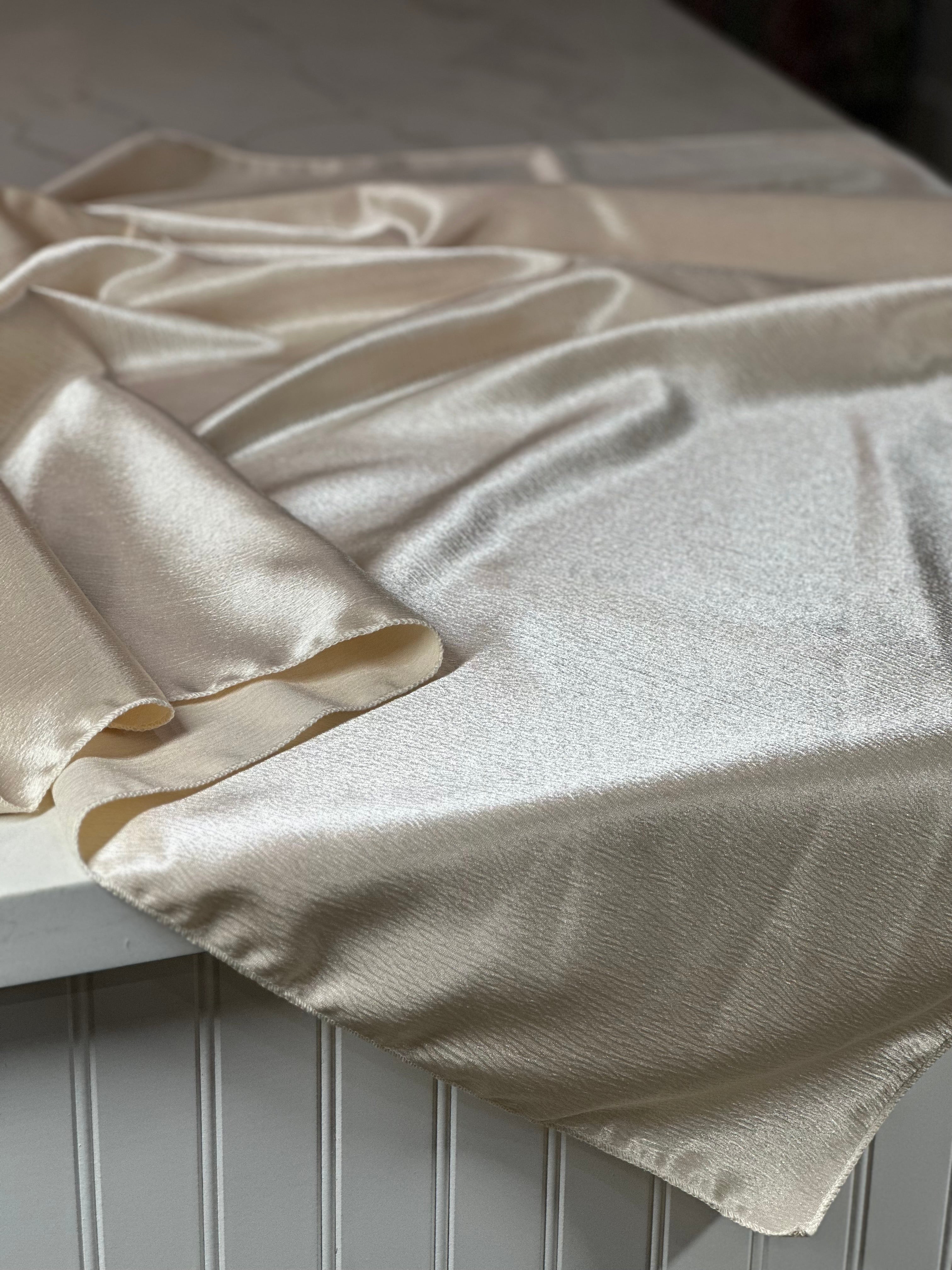 Table linen sizes that exceed the width of the fabric will have seams. All seams are sewn with 5 thread overlock sergers for long lasting durability.