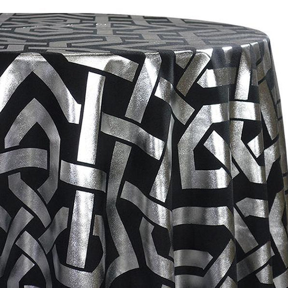 Majestic (Metallic Print) Table Linen in Black and Silver