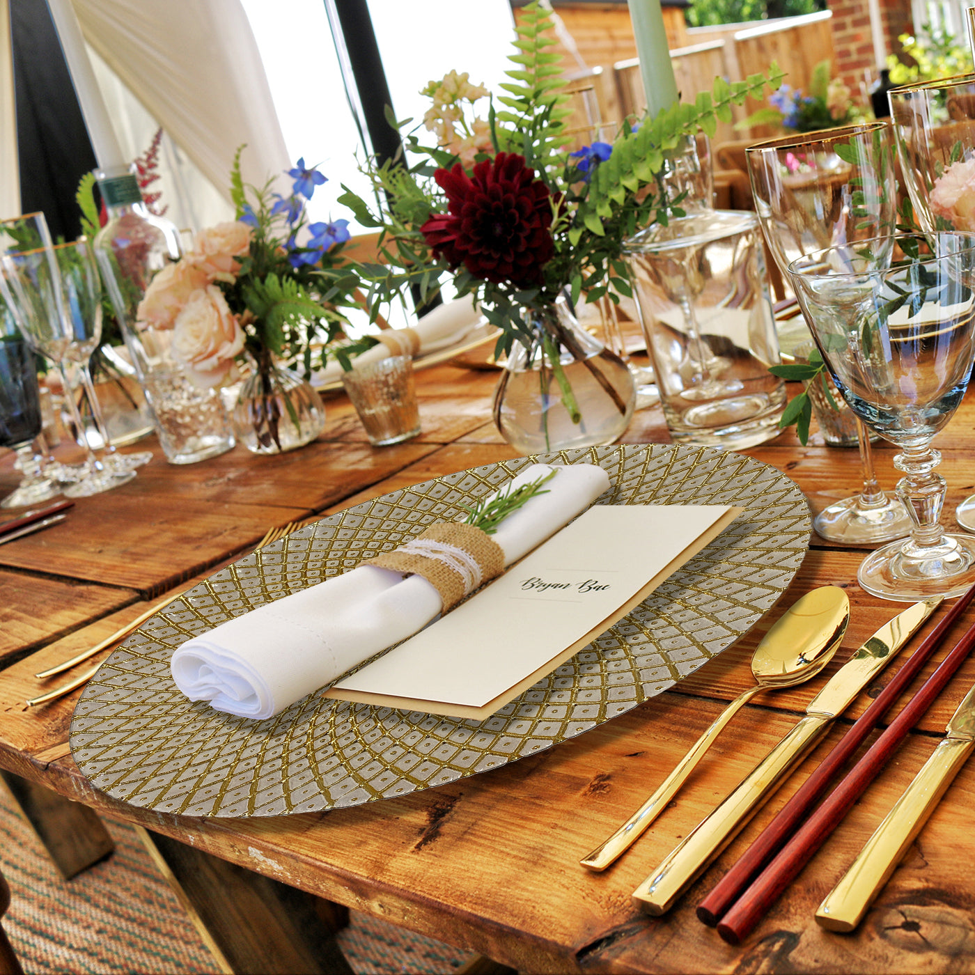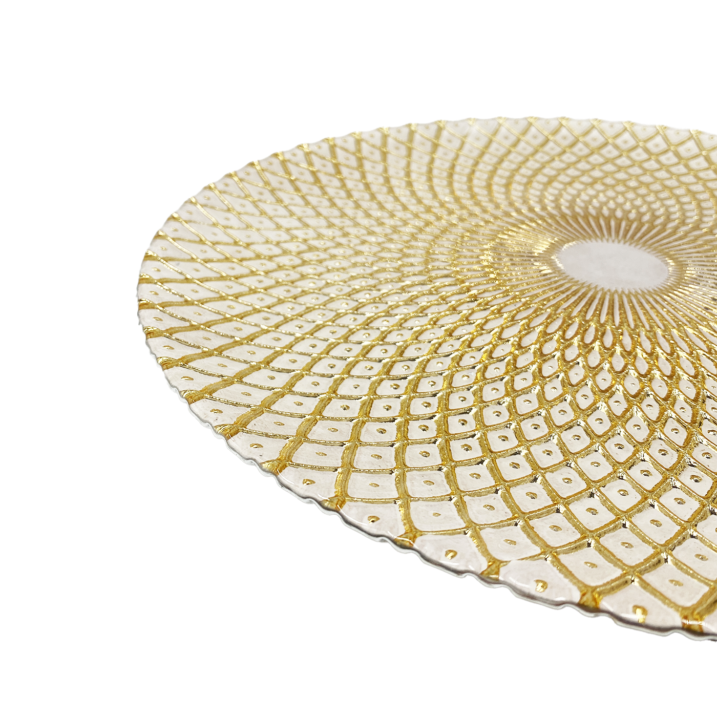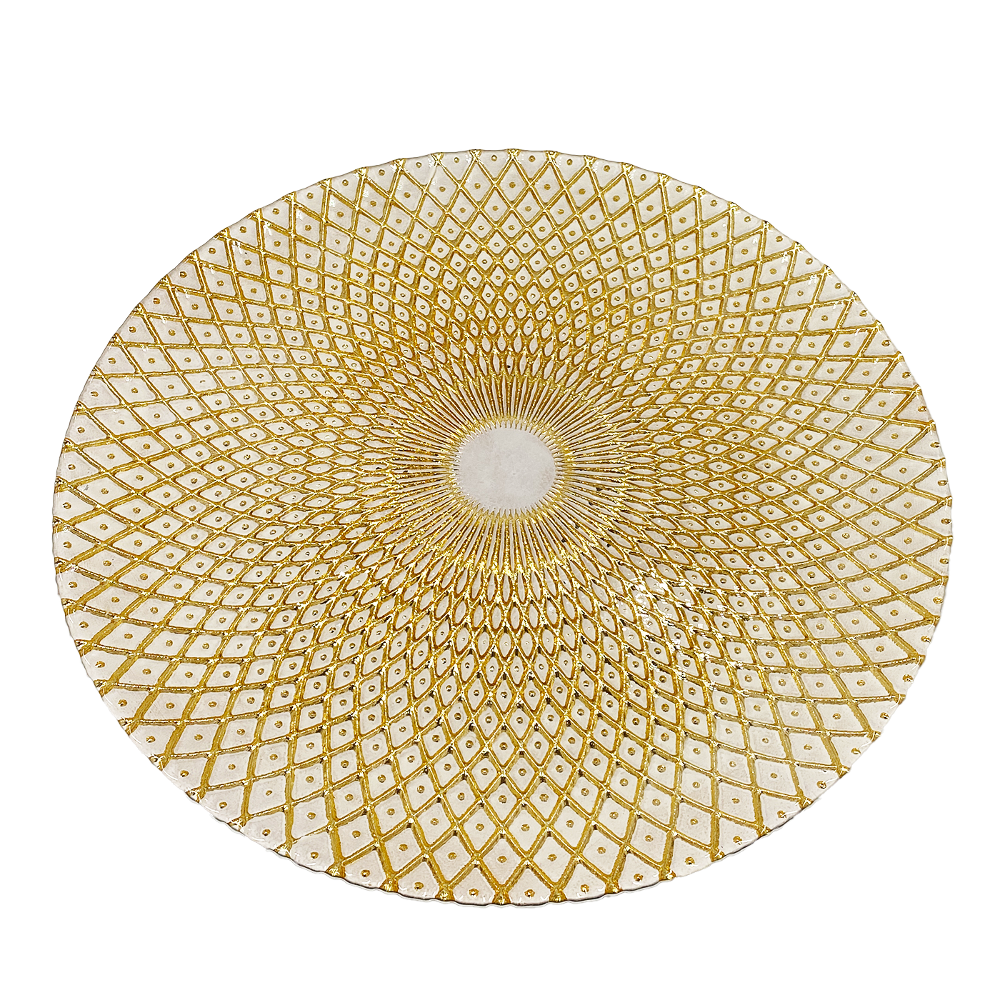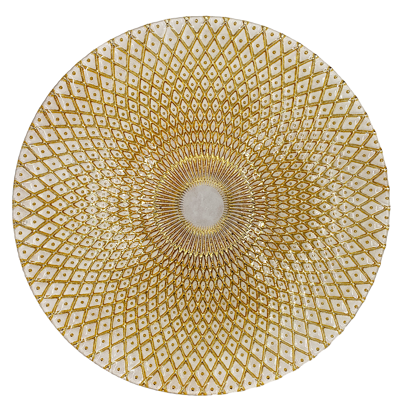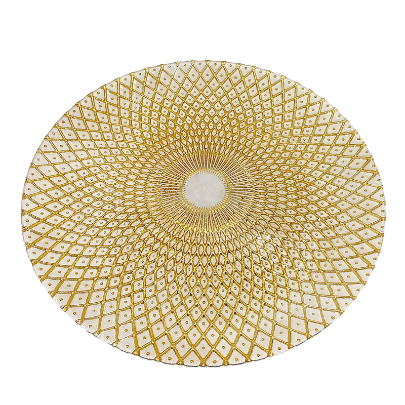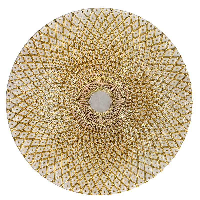 Mandala - Glass Charger Plate in Gold / White (Item # 0230)