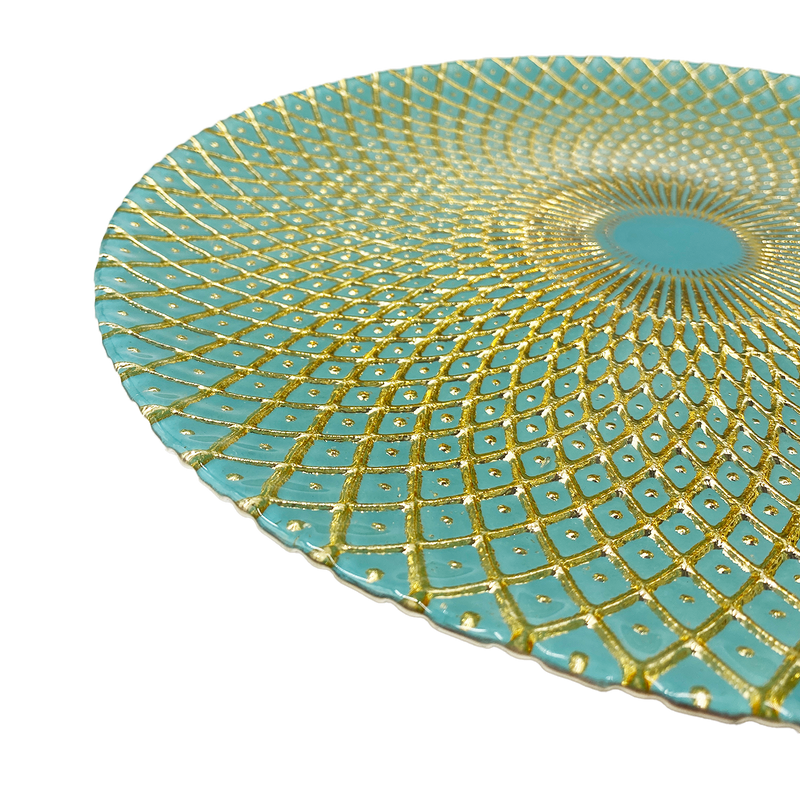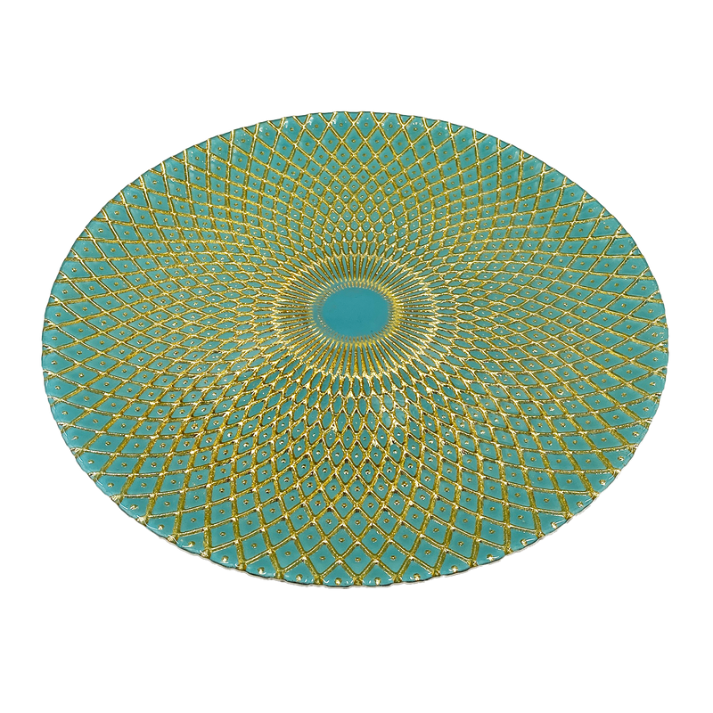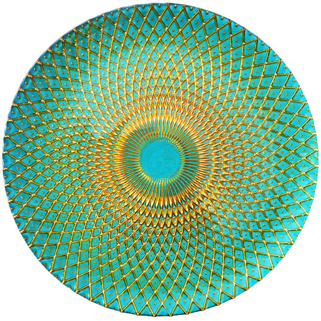 Mandala - Glass Charger Plate in Gold Teal (Item # 0230)