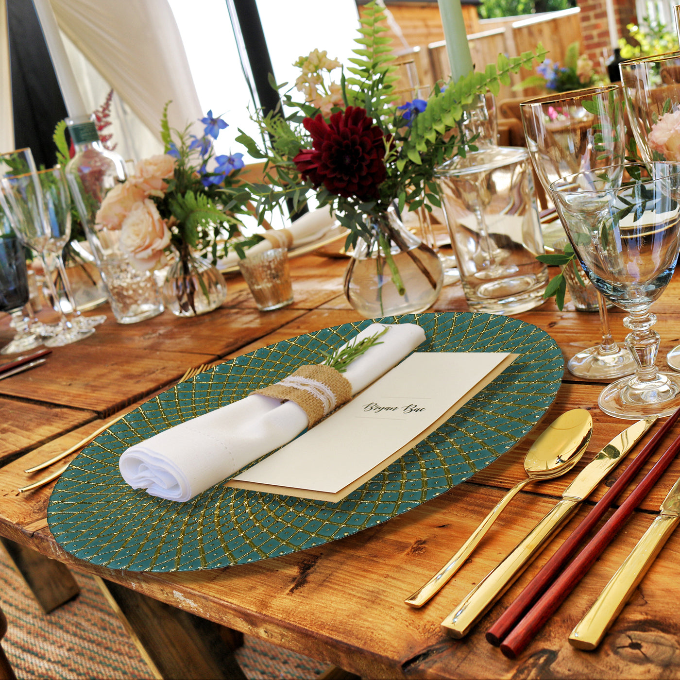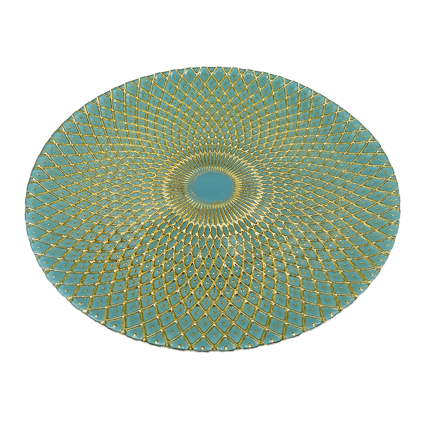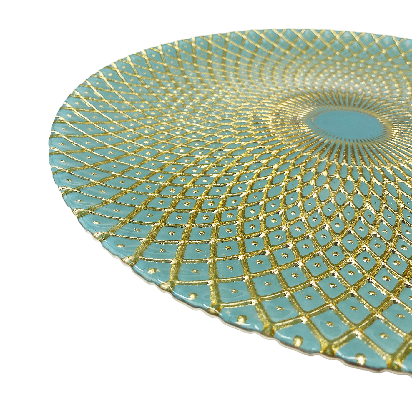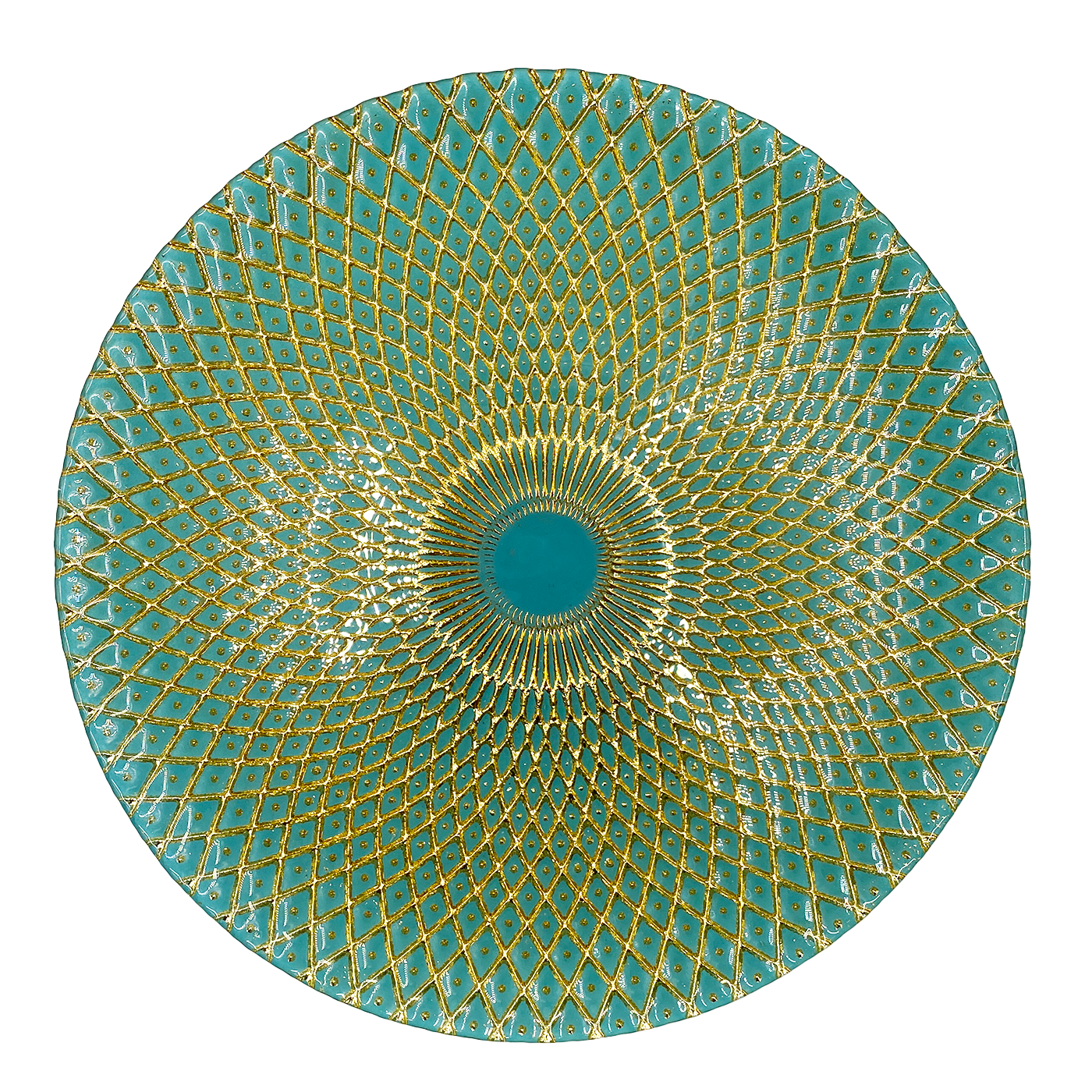 Mandala - Glass Charger Plate in Gold Teal (Item # 0230)