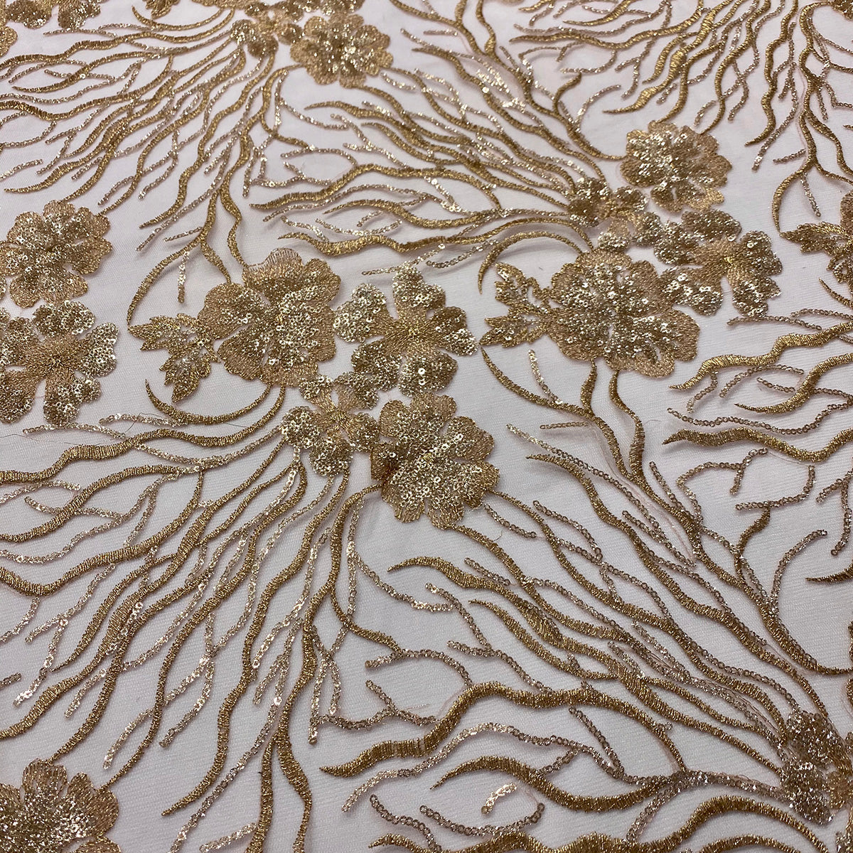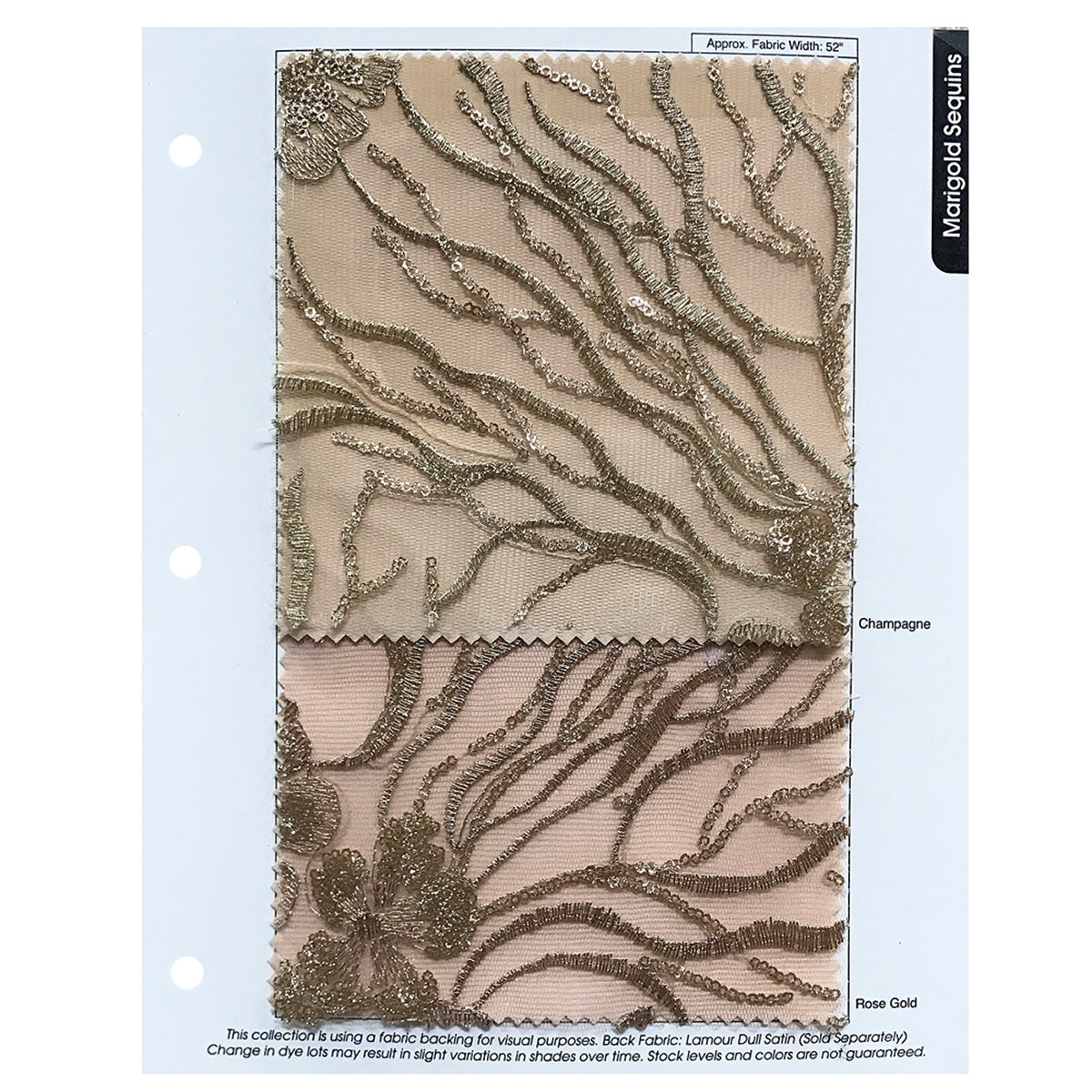 Fabric Collection: This fabric has a mesh/sheer base w/ a sequined floral embroidery throughout.
