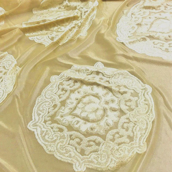 Medallion Jacquard Sheer Wholesale Fabric in Gold