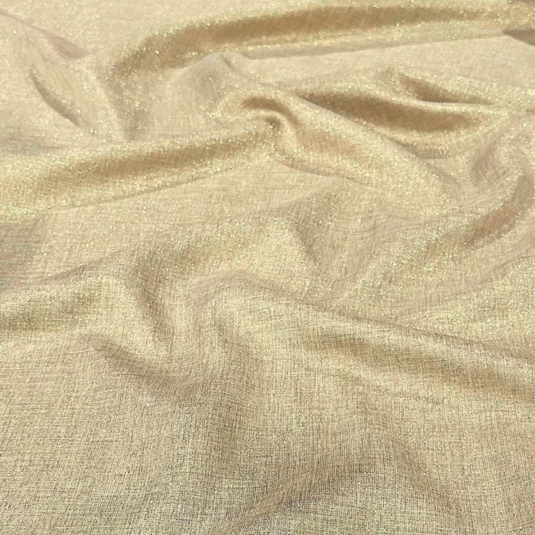 Fabric Collection: This fabric has a burlap texture/design throughout and is made from polyester so it's easy to care for. It also has metallic threading to give it an elegant upgrade vs the traditional burlap look - This fabric is in a Beige color with Gold metallic threading mixed in.