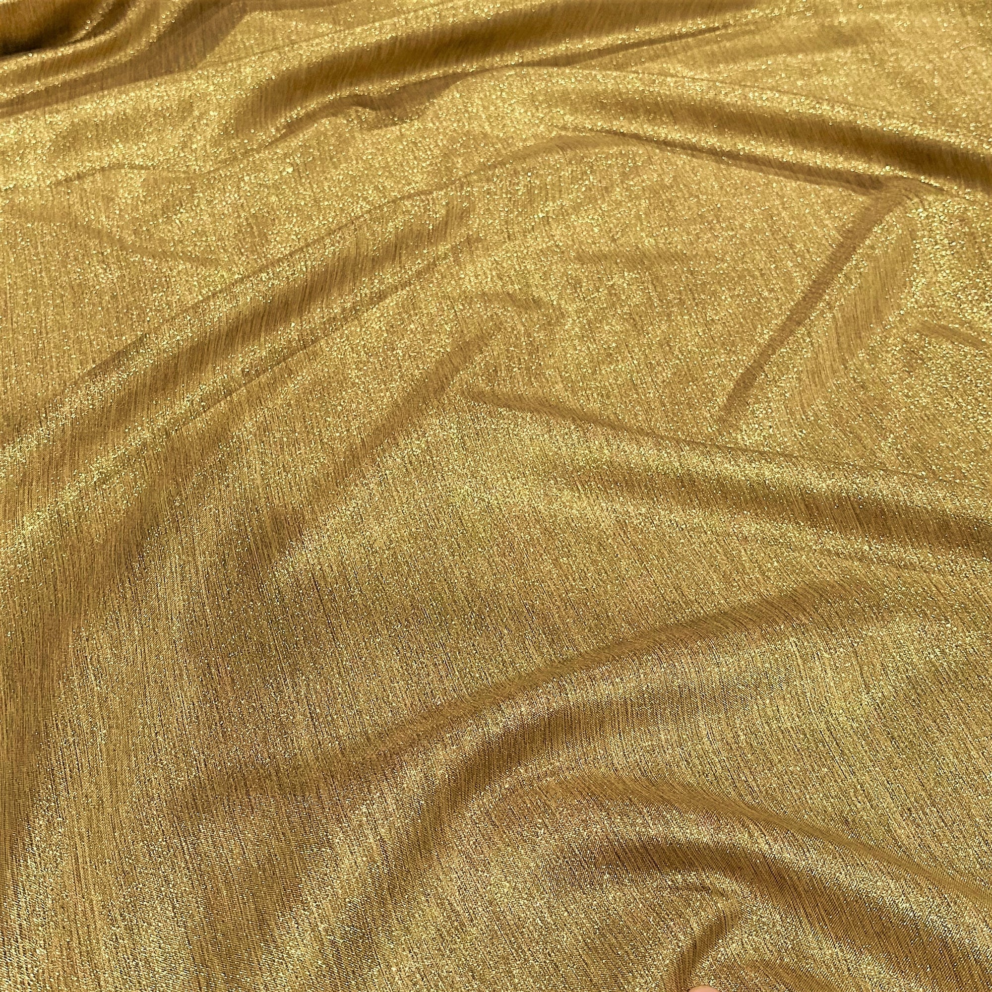 Fabric Collection: This fabric has a burlap texture/design throughout and is made from polyester so it's easy to care for. It also has metallic threading to give it an elegant upgrade vs the traditional burlap look - This fabric is in a Gold color with Gold metallic threading mixed in.