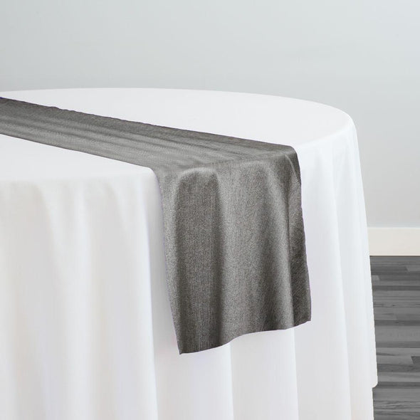 Fabric Collection: This fabric has a burlap texture/design throughout and is made from polyester so it's easy to care for. It also has metallic threading to give it an elegant upgrade vs the traditional burlap look - This fabric is in a black color with silver metallic threading mixed in.