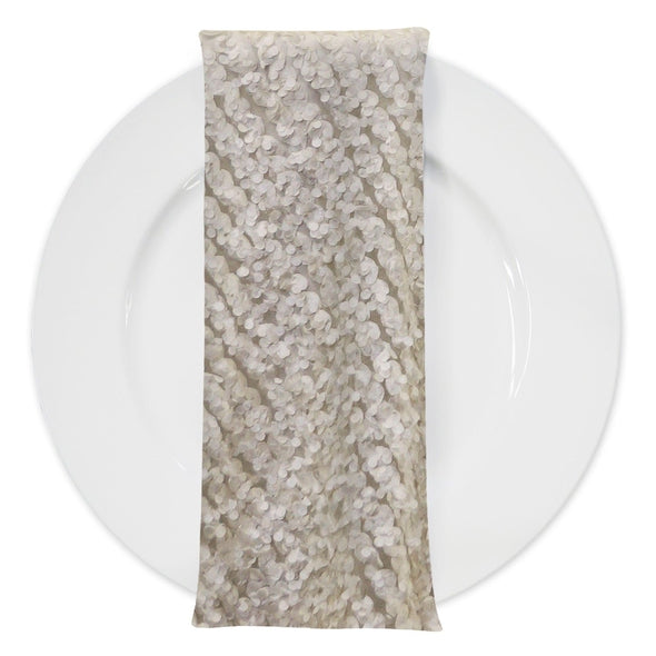 Mini Petals On Mesh (w/ Poly Lining) Table Napkin in Ivory