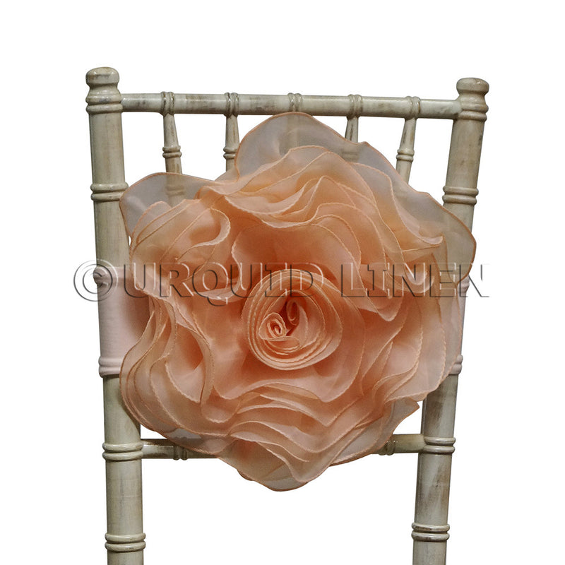 PRODUCT INFORMATION: Organza Rosette Chair Bow with Spandex Band.