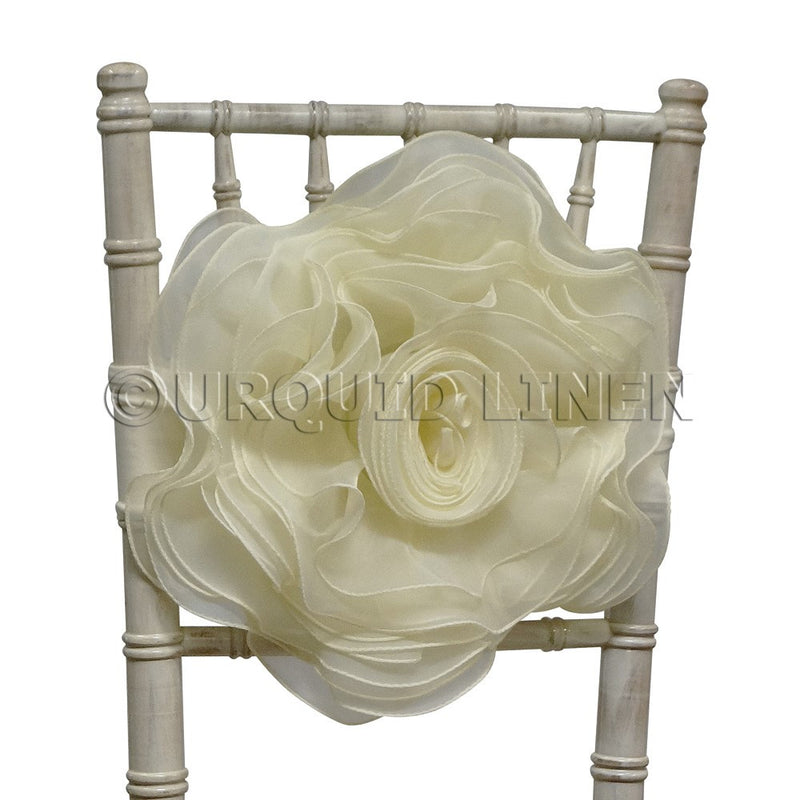 PRODUCT INFORMATION: Organza Rosette Chair Bow with Spandex Band.