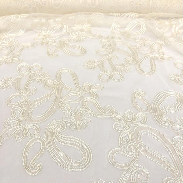 Paisley Floret Sequins (w/ Poly Lining) Table Napkin in Ivory