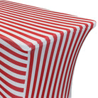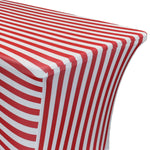 Print Spandex (8'x30") Banquet Table Cover in Red/White Stripes