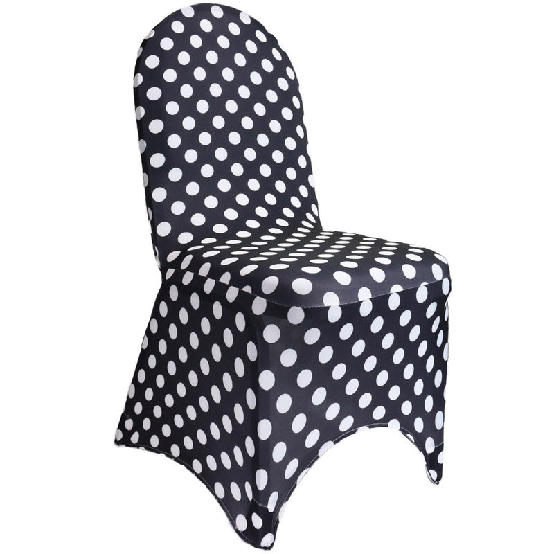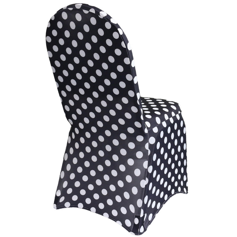 Print Spandex Banquet Chair Cover in Black and White Polka Dot