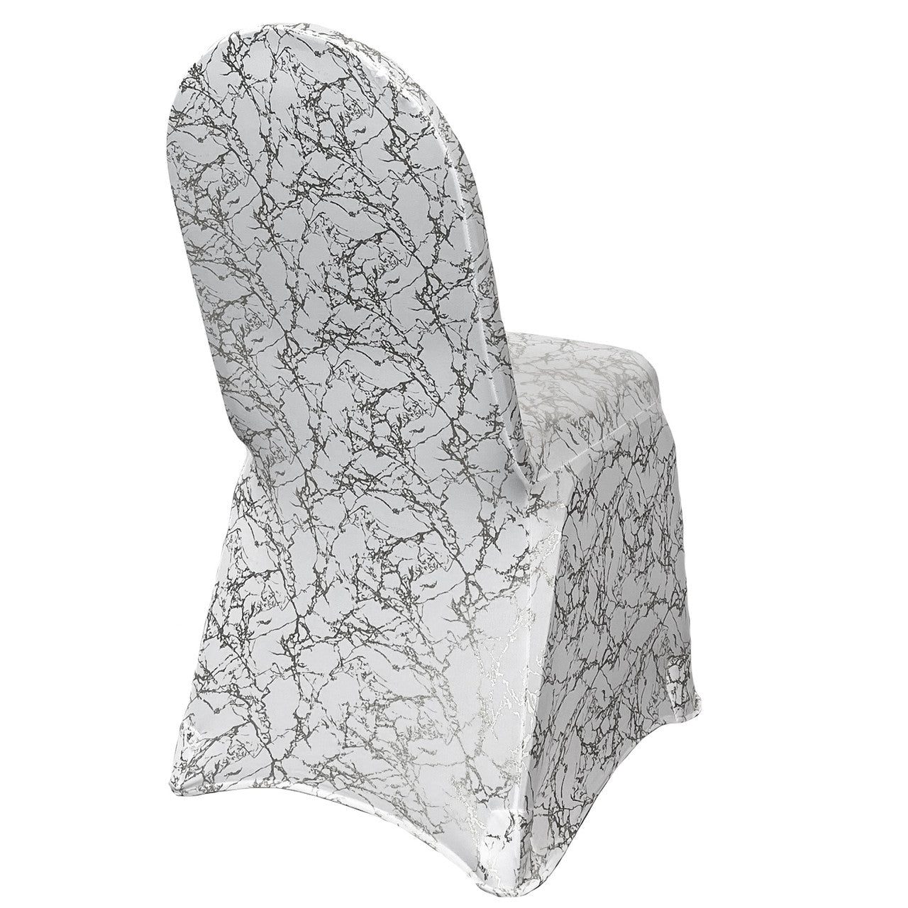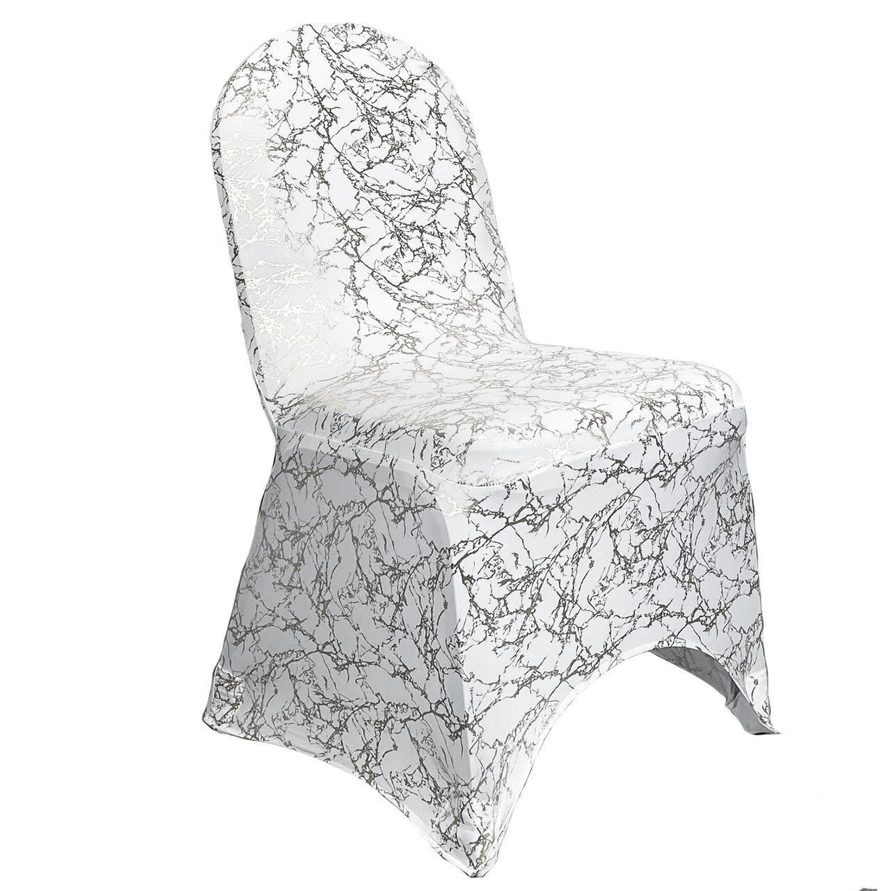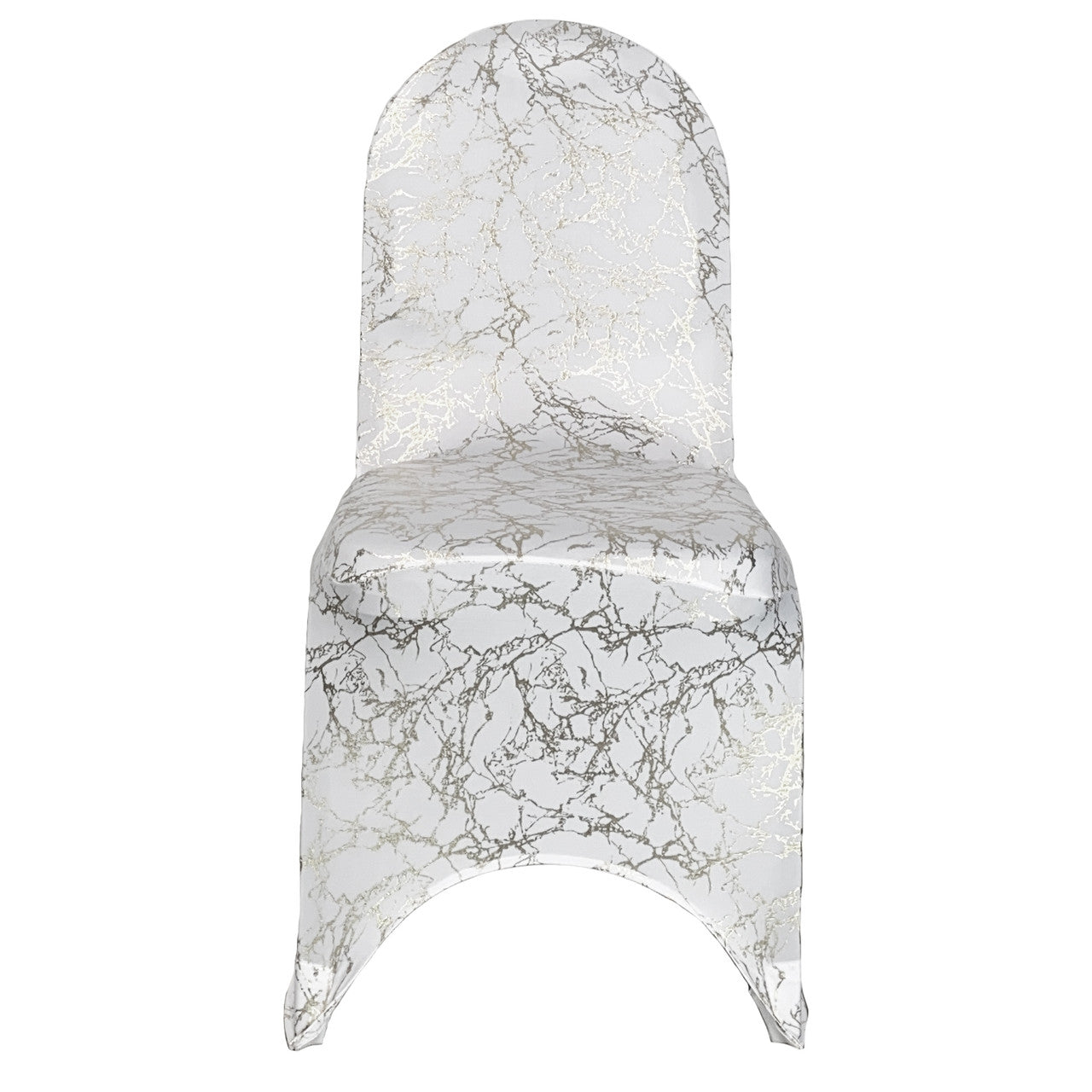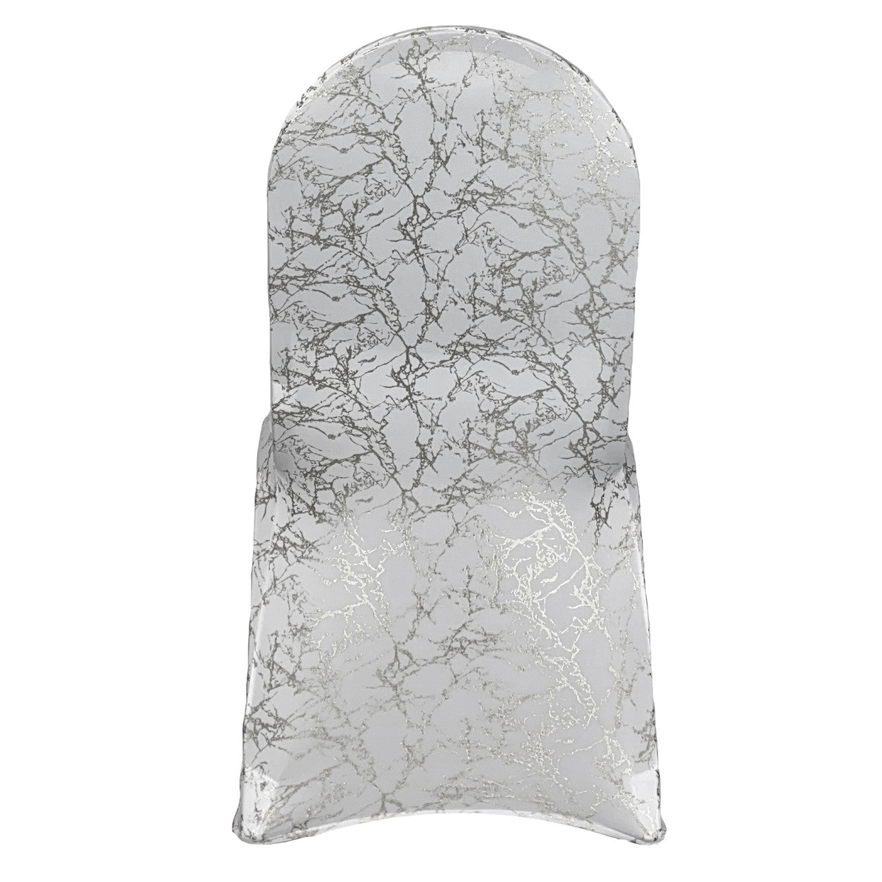 Print Spandex Banquet Chair Cover in White with Silver Marbling