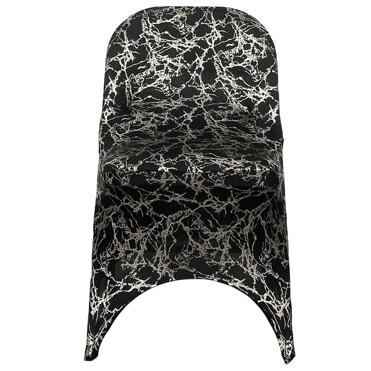 Print Spandex Folding Chair Cover in Black with Silver Marbling