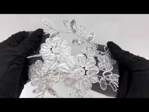 Fabric Collection: This fabric has a mesh/sheer base w/ a floral & sequins embroidery design.