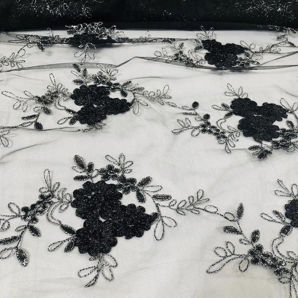 Fabric Collection: This fabric has a mesh/sheer base w/ a floral & sequins embroidery design.