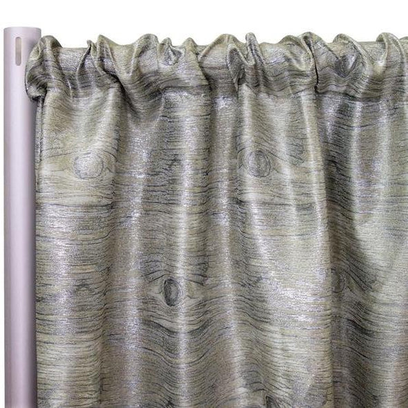 abric Collection: This fabric is a Jacquard material with a metallic multi-colored threading and a wood-grain embroidered design throughout.